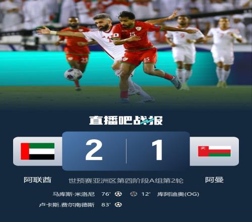 本轮世预赛阿联酋2-1击败爱曼,此役后阿曼垫底,阿联酋暂居榜首,下轮将战卡塔尔。