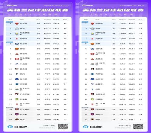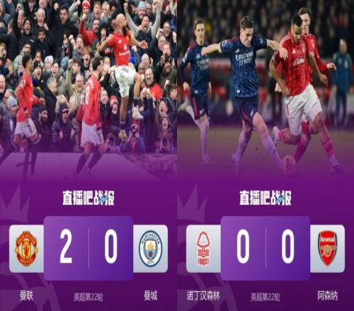 体育播报01月18日宣 英超第22轮战罢多场,阿森纳0-0森林丢了2分,曼城0-2曼联丢了3分。
