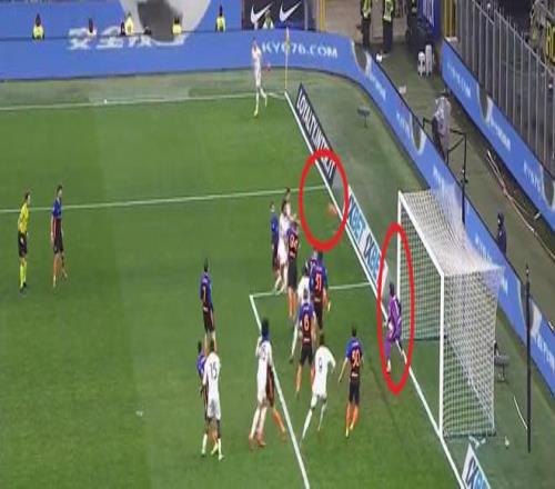 有人会说,这种角球攻门距离如此之近,一般来说门将是极难给出有效反应的。没错,但话是这么说,并不等于角球只要形成攻门,门将就只能缴枪投降。索默在丢球当中有没有给出反应?有!但他在做出有效动作的时候,双手拍到球的时候,球已经完整越过门线了。