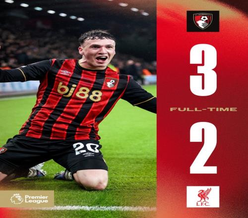 体育播报01月25日宣 英超第23轮,利物浦2-3遭伯恩茅斯绝杀。“樱桃军团”本月已接连绝杀热刺和利物浦。