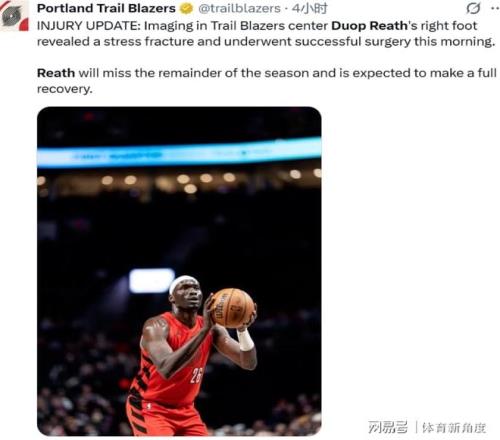 除了戈登,今天还有个比他还惨的“倒霉蛋”,开拓者队的内线杜普 - 里斯,遭遇了应力性骨折,这伤,就跟“定时炸弹”似的。开拓者官方都发话了,里斯已经做完手术,可这赛季是彻底“凉凉”了。这赛季里斯打了32场,场均2.9分1.2板,这数据,就像小水花似的。开季初,他还跟杨瀚森在第三中锋的位置上“争得你死我活”,可随着赛季推进,他慢慢就变成纯外线炮台了,这俩人的战术位置,就跟两条平行线,没啥竞争关系。而且他俩上场时间都不多,在场下那叫一个亲密,勾肩搭背地聊天,就跟多年未见的老友似的。